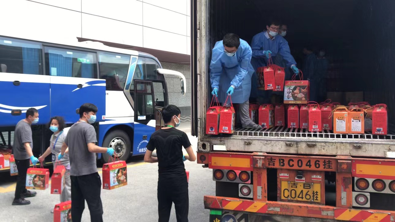 本輪疫情一開始,我們就啟動(dòng)了生活物資和抗疫物資的儲(chǔ)備。但在3月27日那個(gè)夜晚,當(dāng)數(shù)千人星夜趕回公司時(shí),依然有部分員工的休息條件異常艱苦。在后勤團(tuán)隊(duì)的努力下,這一情況很快得到了改善,睡袋、行軍床、氣墊床、折疊床等寢具不斷升級換代,還有部分員工住進(jìn)了創(chuàng)新園宿舍和康橋基地宿舍。食品的供應(yīng)也越來越豐富,青團(tuán)、粽子等美食沒有缺席傳統(tǒng)節(jié)日,西瓜、荔枝等時(shí)令水果如約而至,韭菜盒子、康橋小龍蝦等則成為了大家心心念念的網(wǎng)紅美食。供應(yīng)商、客戶和合作伙伴也紛紛送上了蔬菜、日用品、抗疫物資和藥物。集團(tuán)各級工會(huì)為大家提供了零食、衣物和日用品,還為駐廠員工的家屬、居家員工安排了蔬菜禮包。隊(duì)伍龐大的志愿者在物資搬運(yùn)、分發(fā)等工作中發(fā)揮了重要作用,特別是上百名TONY老師,為駐守員工完美解決了“頭等大事”!