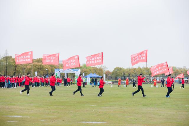 鮮紅旗幟書寫響亮口號,響亮口號彰顯昂揚斗志。各工廠、各單位旗手代表揮舞旗幟,沖鋒而來。