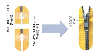 - 特殊定位設(shè)計,有無下止均可靈活定位,保證無下止穿頭后鏈牙整齊閉合。